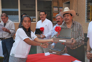 funcionario explicó que la entrega de las 26 computadoras y mas becas se llevo a cabo atraves del